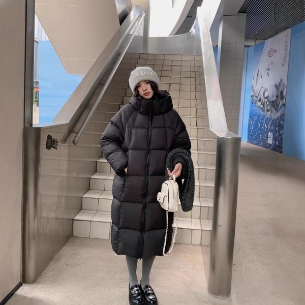 90 white duck down popular cloud puff down jacket for women, medium to long, 2025 new model (black)