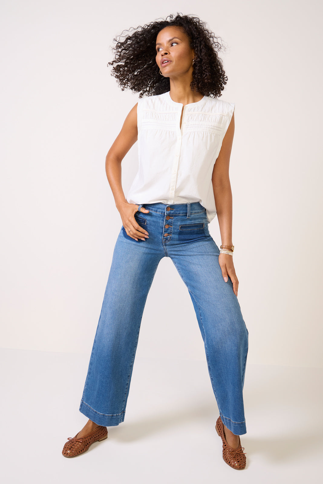 Crafted in lightweight cotton. the Alyssa Sleeveless Shirt by Luccaskick features front button closures. yoke detailing. and a relaxed silhouette.