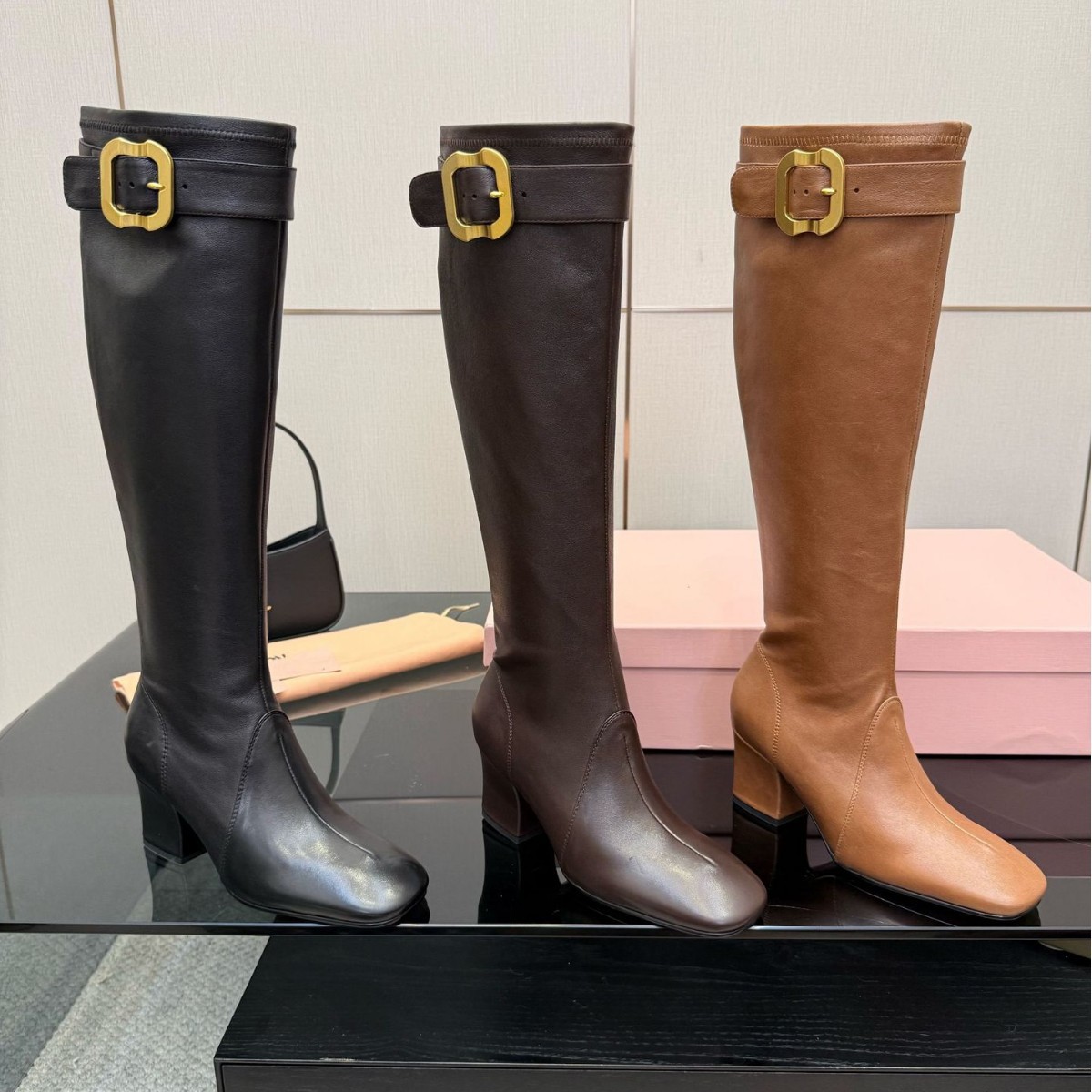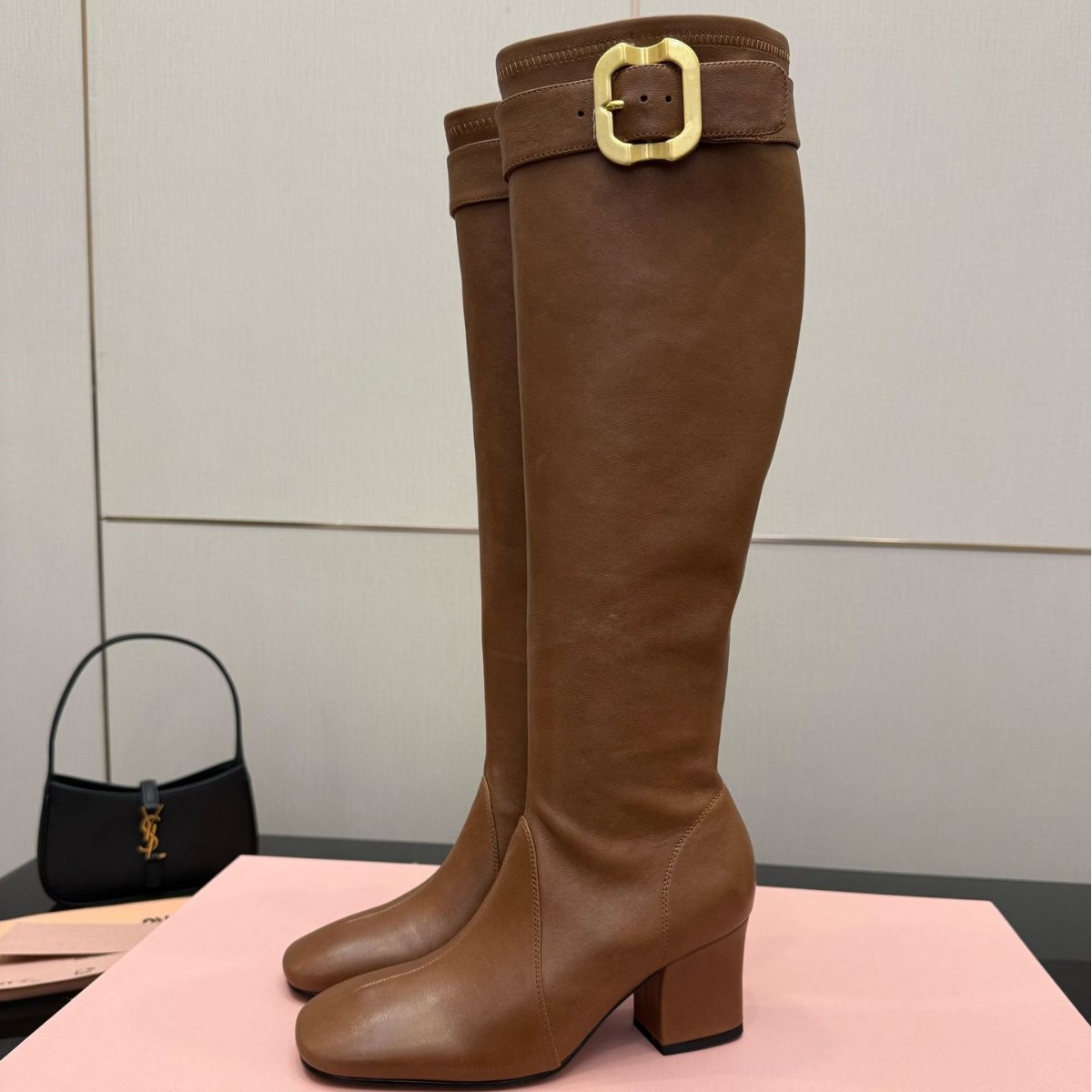 Gaoding New Style Zhang Yuanying Same Style Liao Family Retro Brushed Long Boots Round Head Metal Buckle Thick Heel Leather Long Tube Boots